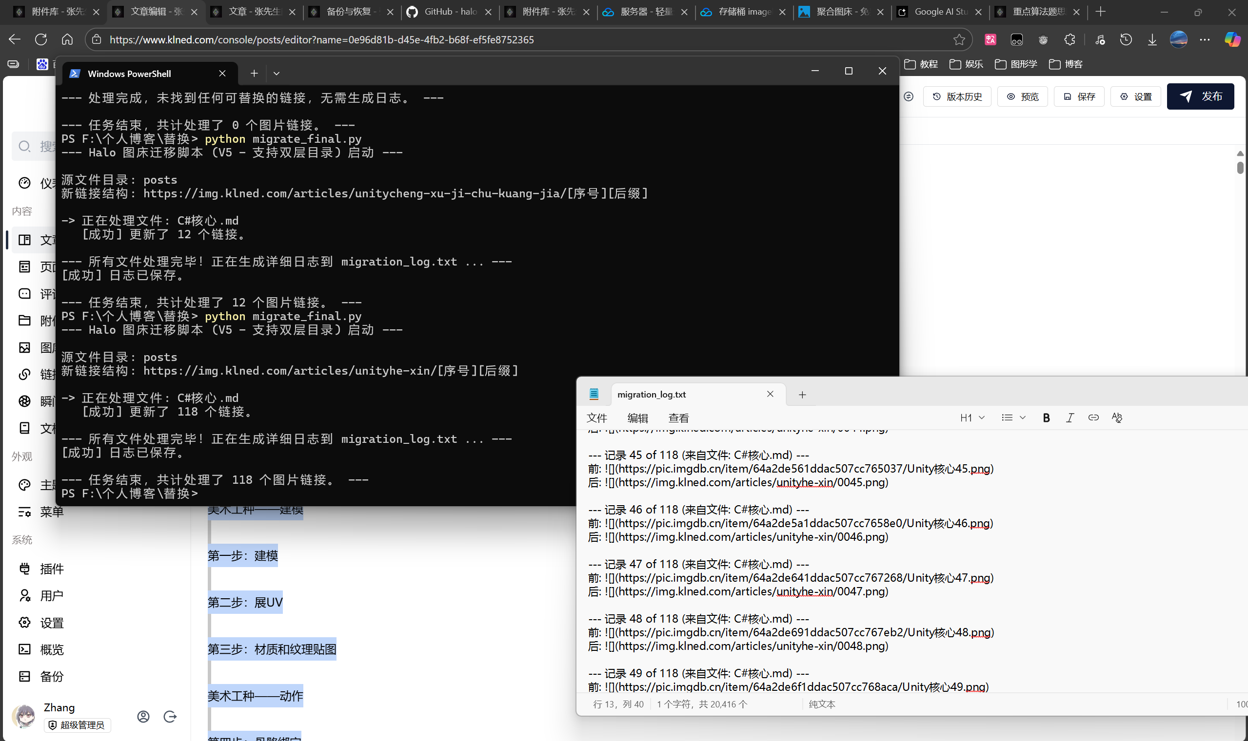 过程充满了艰辛,主要是大量的url替换问题,markdown编辑器替换起来还好,可以自动化,html就只能手动替换了,特别是我心心念念的shader入门,更是106张图替换的手麻。